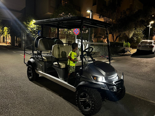 為了迎合國際客戶(hù)的需要,綠友設計人員在電動(dòng)越野車(chē)上投入了大量的精力。新款霸氣的前罩、高強度的金屬前保險杠、汽車(chē)樣式組合前照燈、舒適豪華的皮座椅,為客戶(hù)帶來(lái)耳目一新的感受。阿爾巴尼亞客戶(hù)最喜歡的就是電動(dòng)越野車(chē)的前照燈,遠近光燈、轉向燈、剎車(chē)燈,超強的燈光像眼睛一樣照亮了前進(jìn)的道路。