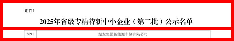 江蘇省工業(yè)和信息化廳于今日公示專(zhuān)精特新中小企業(yè)名單,綠友集團新能源車(chē)輛有限公司榮獲2025年江蘇省“專(zhuān)精特新”中小企業(yè)認定。綠友擁有高素質(zhì)的研發(fā)團隊、核心的產(chǎn)品優(yōu)勢、扎實(shí)的生產(chǎn)經(jīng)驗積累和優(yōu)質(zhì)的銷(xiāo)售服務(wù)團隊。這不僅是對過(guò)去成績(jì)的肯定,更是未來(lái)邁向更專(zhuān)業(yè)化、更高水平發(fā)展的新起點(diǎn)。
