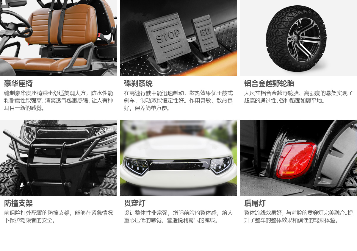 四輪液壓碟剎+電子駐車(chē)。車(chē)輛底盤(pán)高、動(dòng)力足、安全性高,具備非同一般的駕乘感。